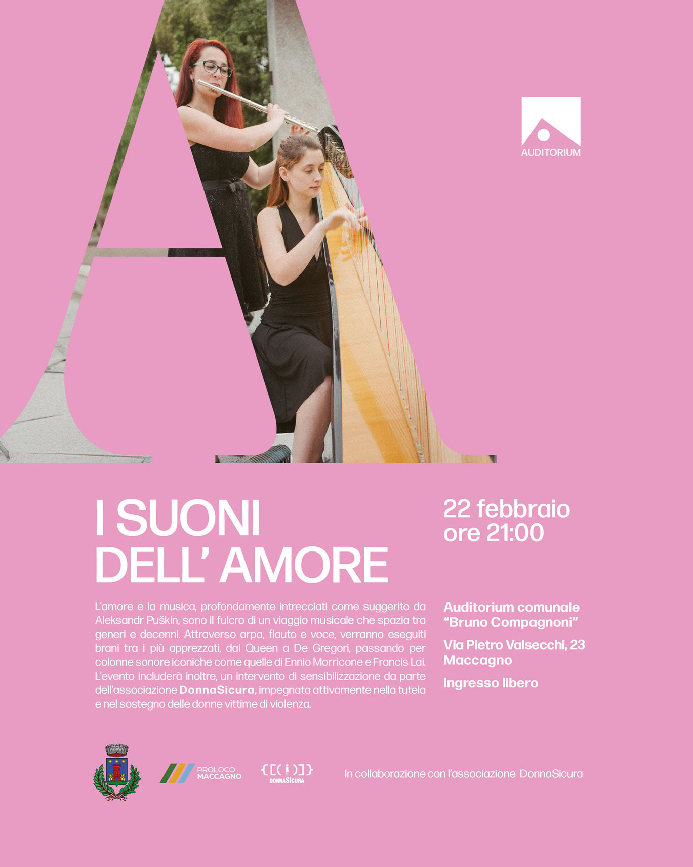Le sorelle concertiste Elena e Clarissa Guarneri che in arte sono le Flhar Sisters grazie ad arpa, flauto e voce presenteranno un viaggio musicale che intreccia Amore e Musica spaziando tra generi e decenni, dai Queen a De Gregori e da Morricone a Lai nelle colonne sonore.
